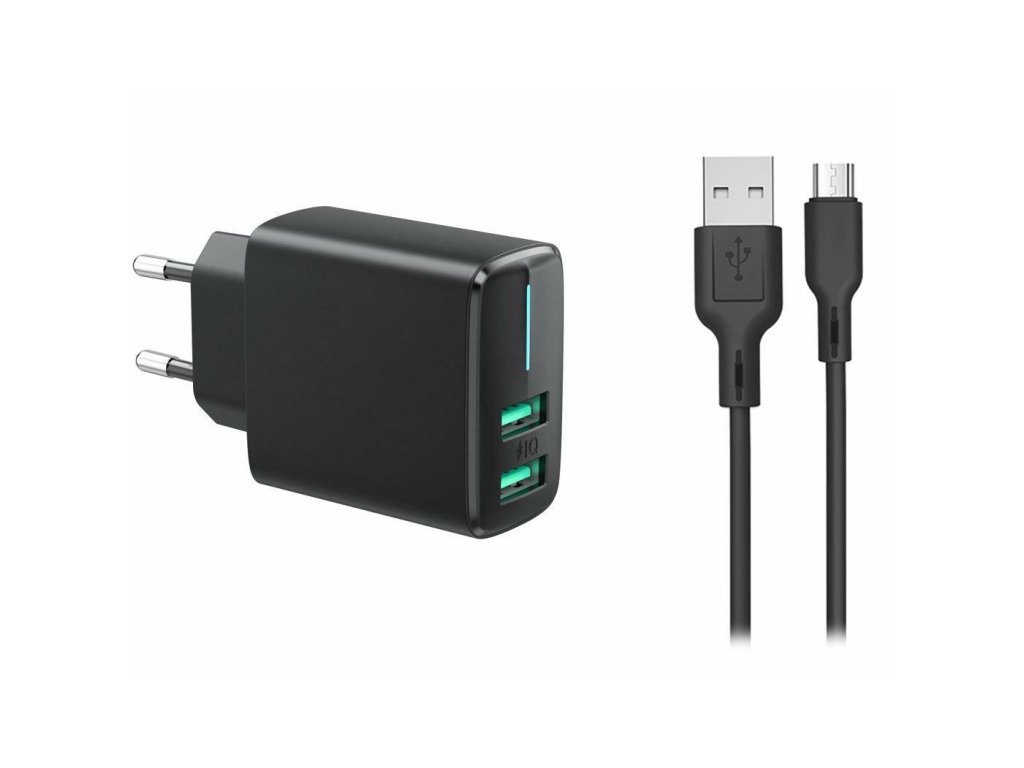 USB nabíjačka do zásuvky s 2× USB výstupom + Micro USB kábel