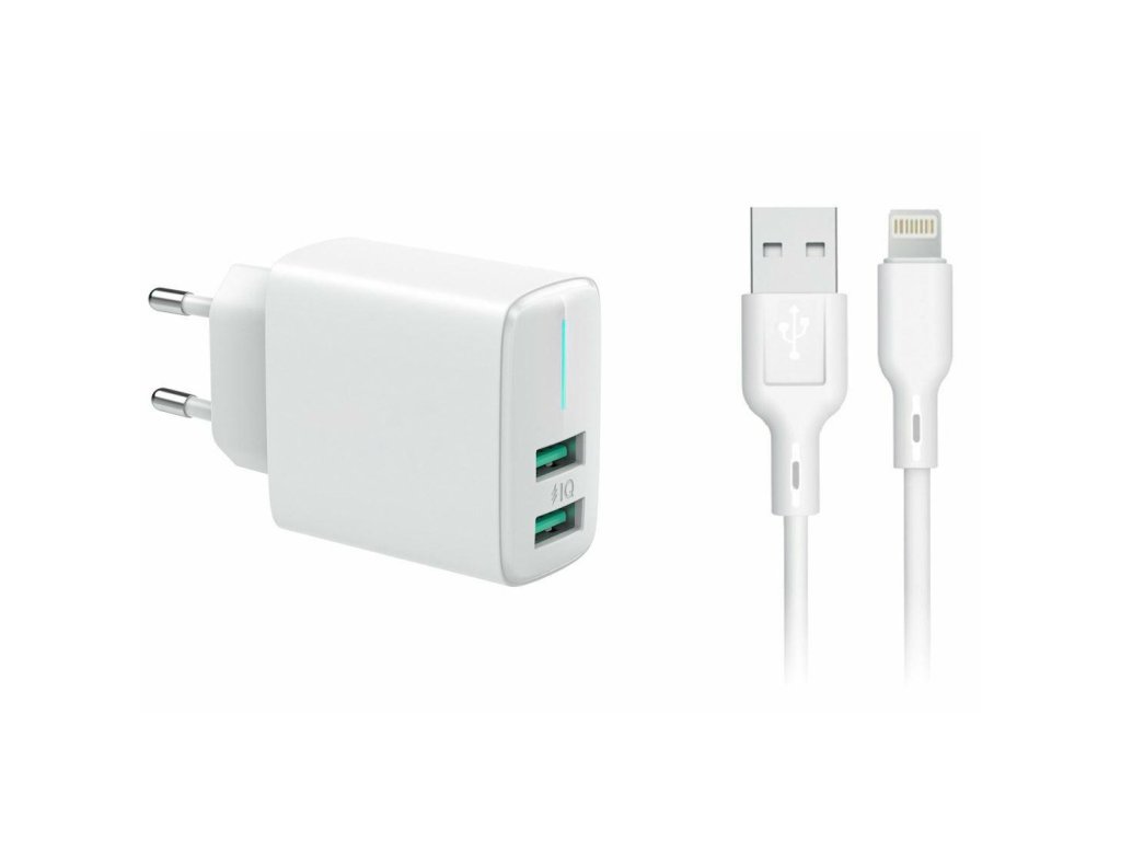 USB nabíjačka do zásuvky s 2× USB výstupom + iPhone kábel (biela)