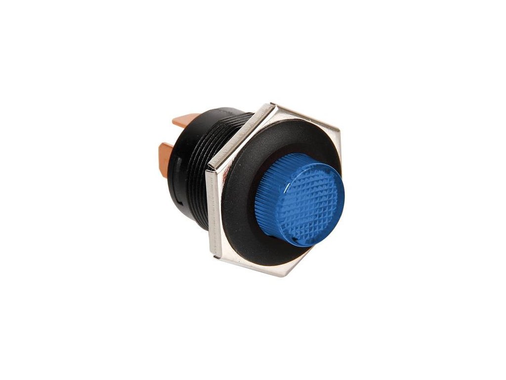 Vypínač tlačítkový s LED indikátorom, modrý, 12/24 V