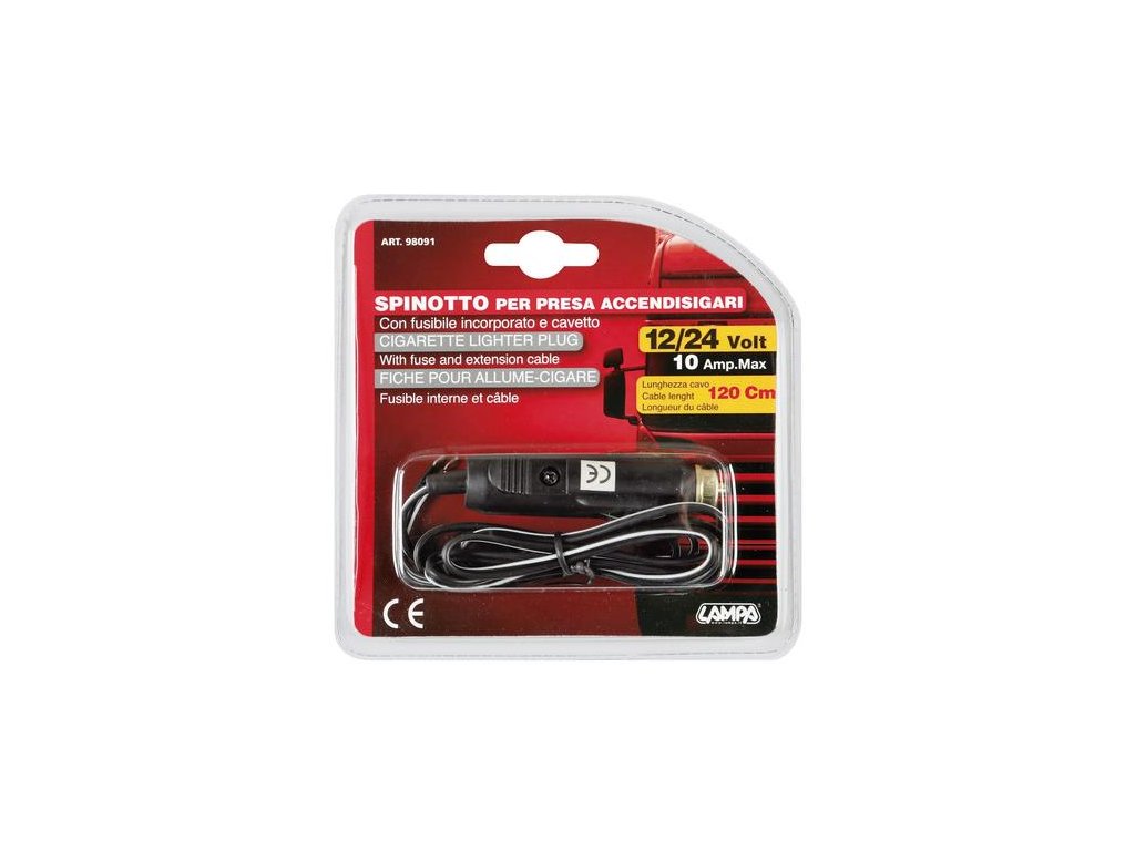 Zástrčka zapaľovača univerzálna 12 -24 V s káblom, poistkou a červenou LED kontrolkou Rozmery: VSTUP ---> 12/24 V - Standard VÝSTUP ----> kábel 120 cm - 15 ADodatočné parametre