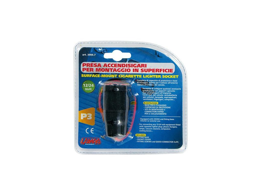 Zástrčka zapaľovača s uzáverom 12 -24 V komplet s krytom Rozmery: VSTUP ---> 12/24 V - kábel VÝSTUP ----> 12/24 V - standard - 8 A Vhodné pre vnútornú ako aj vonkajšiu montáž. S krytom a montážnou základňou. Montáž pomocou skrutiek a rýchloupínacích svoriek. Inštrukcie k zapojeniu: 1.Spojte červený kábel s + koncom napájania . 2. Spojte čierny kábel so záporným - koncom elektr. systému alebo na karosériu.Dodatočné parametre